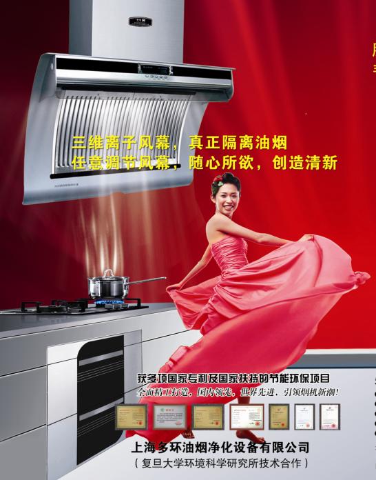 發(fā)展無坦途,創(chuàng)新無止境,只有不斷創(chuàng)新,才能讓您成為焦點.現(xiàn)在,多環(huán)廚房專家已為您有效的解決油煙污染推出了新方案.三維離子風(fēng)幕技術(shù),為吸油煙機帶來新變革,在油煙機正面,任意多個角度設(shè)置風(fēng)幕,封死油煙逃逸方向,有效的隔離油煙,實現(xiàn)全面除煙.另有活性炭凈化裝置,可以凈化廚房空氣,給您一個清新、自然的家。