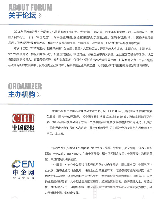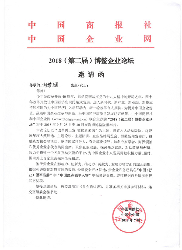 2018年是改革開放四十周年,也是貫徹落實黨的十九大精神的開局之年。四十年改革開放讓中國經(jīng)濟實現(xiàn)跨越式發(fā)展,進入新時代,新產(chǎn)業(yè)、新業(yè)態(tài)、新模式持續(xù)不斷的為中國經(jīng)濟注入新鮮動力,新一輪改革令人期待。本次論壇以“改革再出發(fā)、鏈接新未來”為主題,邀請國家領(lǐng)導人、有關(guān)部委領(lǐng)導、知名專家學者、商界領(lǐng)袖和優(yōu)秀企業(yè)家代表共同出席,聚焦企業(yè)發(fā)展,探討熱點議題,對話改革與創(chuàng)新,鑒于油煙凈化器供應(yīng)商、無煙管內(nèi)循環(huán)油煙凈化一體機生產(chǎn)廠家上海多環(huán)油煙凈化設(shè)備有限公司在影響力、創(chuàng)新力、推動力、貢獻力、發(fā)展力等方面的綜合表現(xiàn),根據(jù)相關(guān)媒體對公司法人代表的報道,特邀請何維斌同志參加此次博鰲企業(yè)論壇。