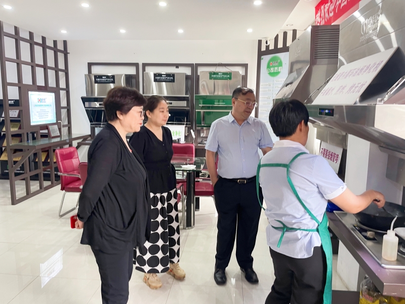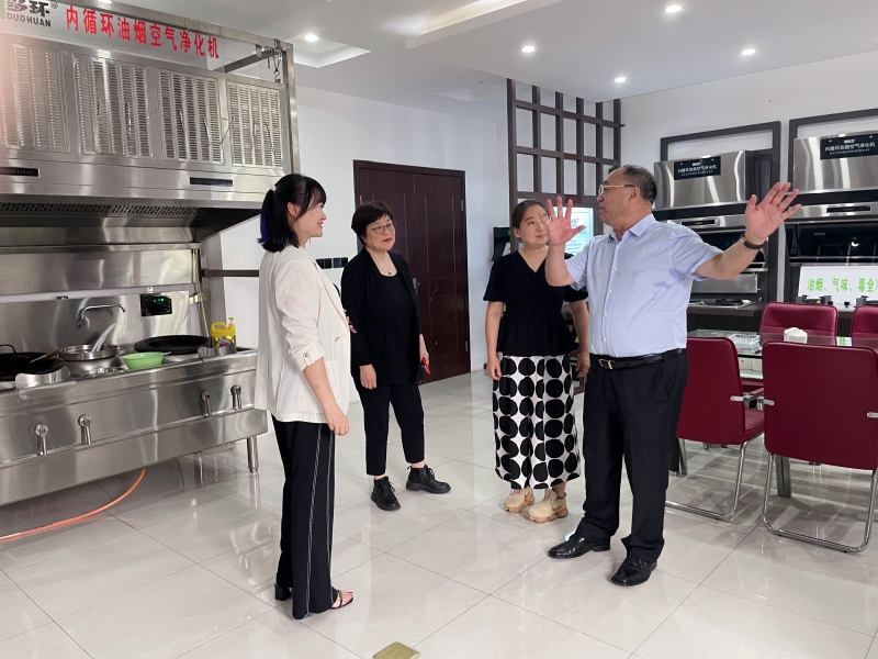 隨后,公司帶領(lǐng)協(xié)會領(lǐng)導(dǎo)們參觀了樣品間和展示廳。在展示廳內(nèi),市場總監(jiān)何楊介紹了多環(huán)公司自主研發(fā)生產(chǎn)的7款“內(nèi)循環(huán)油煙凈化機”專利產(chǎn)品,對每款產(chǎn)品的性能、應(yīng)用場景都一一做了講解。參觀過程中,李基英副理事長和邵白秘書長與工作人員密切交流,詢問了解產(chǎn)品的特點,并由操作員現(xiàn)場演示爆炒辣椒、洋蔥,經(jīng)多環(huán)公司生產(chǎn)的“內(nèi)循環(huán)式油煙空氣凈化機”的處理,可做到不需要外接煙管直接采用吸排凈化一體的形式直接在室內(nèi)就將烹飪中產(chǎn)生的油脂、煙顆粒物、異味、有害氣體及余熱進行了全部的凈化處理,機器排出來的就是干凈的空氣,在房間內(nèi)完全聞不到辣味嗆味。協(xié)會領(lǐng)導(dǎo)看到眼前這一幕,當場對產(chǎn)品的性能贊不絕口。